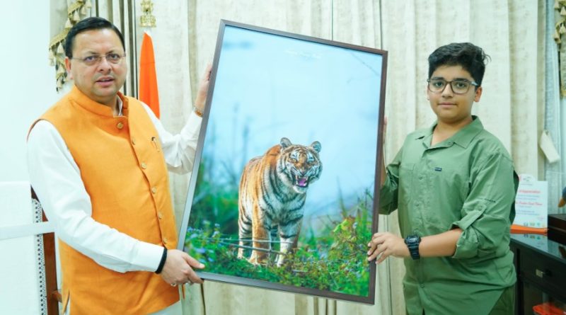 देहरादून। मुख्यमंत्री पुष्कर सिंह धामी से मुख्यमंत्री आवास में अंतरराष्ट्रीय बाघ दिवस के अवसर पर छात्र व प्रतिभाशाली वाइल्ड लाइफ फोटोग्राफर शौर्य प्रताप बिष्ट ने भेंट की | मुख्यमंत्री धामी ने शौर्य प्रताप बिष्ट की उत्कृष्ट रचनात्मक वन्य जीव फोटोग्राफी की प्रशंसा की तथा उन्हें सम्मानित किया |