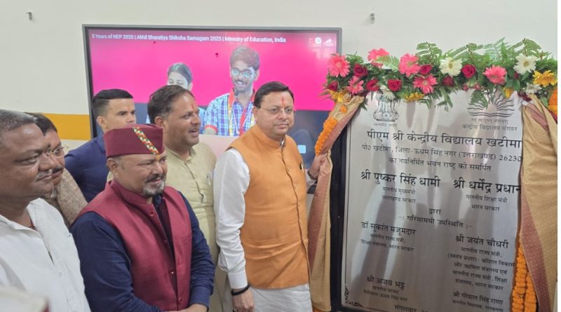खटीमा। मुख्यमंत्री पुष्कर सिंह धामी ने मंगलवार को खटीमा में अखिल भारतीय शिक्षा समागम के अन्तर्गत आयोजित कार्यक्रम में प्रतिभाग करते हुए ₹ 26.23 करोड़ की लागत से निर्मित केंद्रीय विद्यालय, खटीमा का लोकार्पण किया। इस दौरान उन्होंने विद्यालय परिसर में पौधरोपण भी किया।