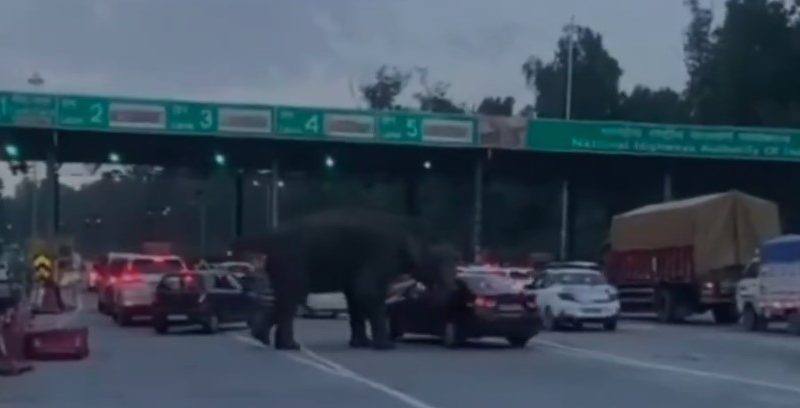 लच्छीवाला टोल प्लाज़ा पर फिर हाथी का आतंक, टोल बैरियर तोड़ा, गाड़ी पलटने की कोशिश